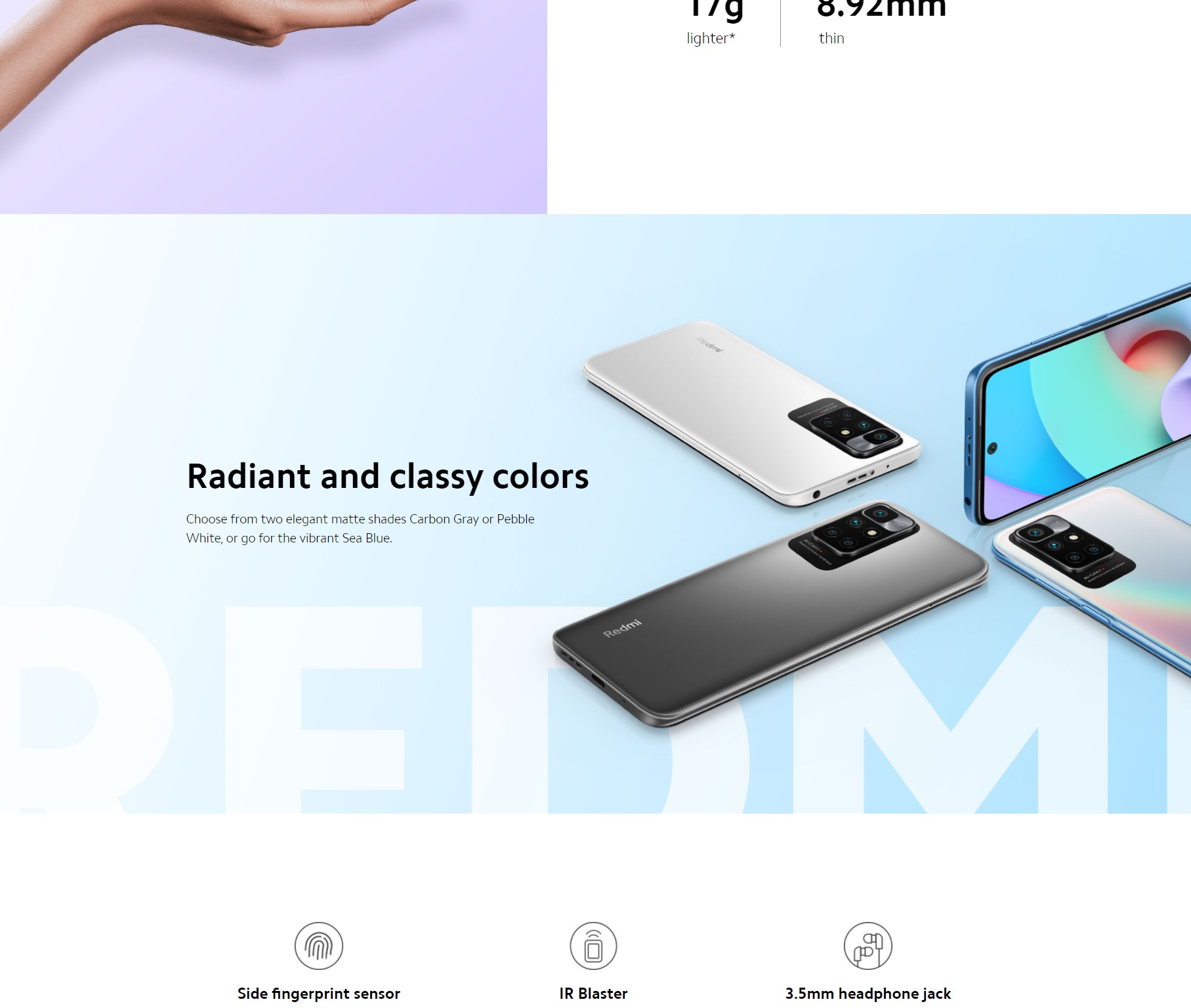 Color: Carbon Gray, Pebble White, Sea Blue