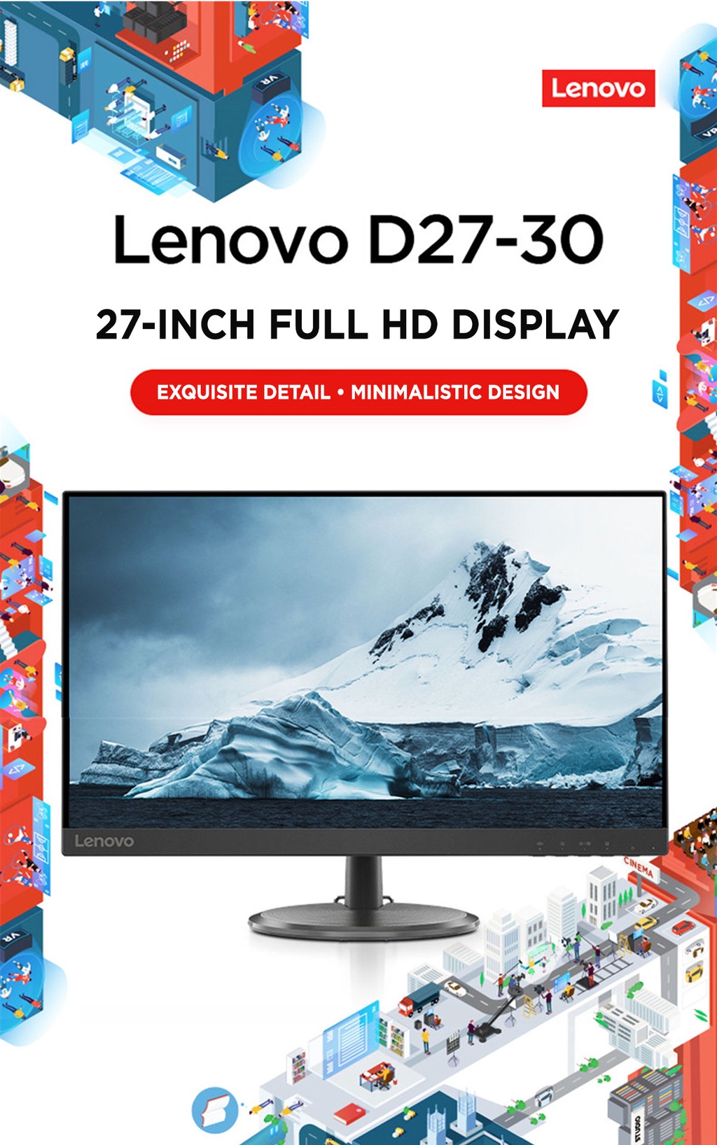 [BEST SELLER] Lenovo D27-30 27 Inch FHD 1920x1080 Monitor (66B8KAC6MY) 250nits | 72% NTSC 82 dpi | 4ms Response Rate | HDMI VGA Multiple Input | HDMI Cable Incl | 3Y Warranty