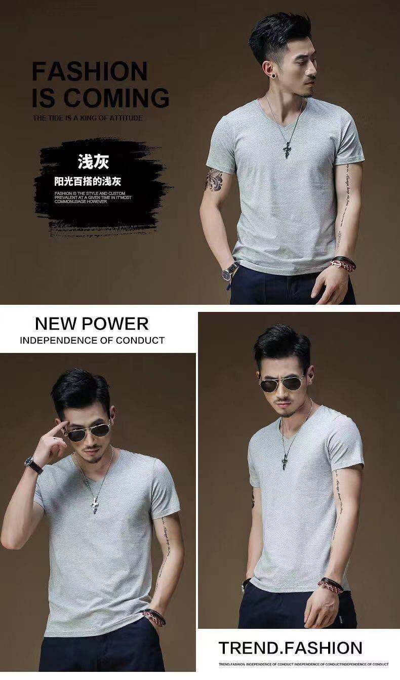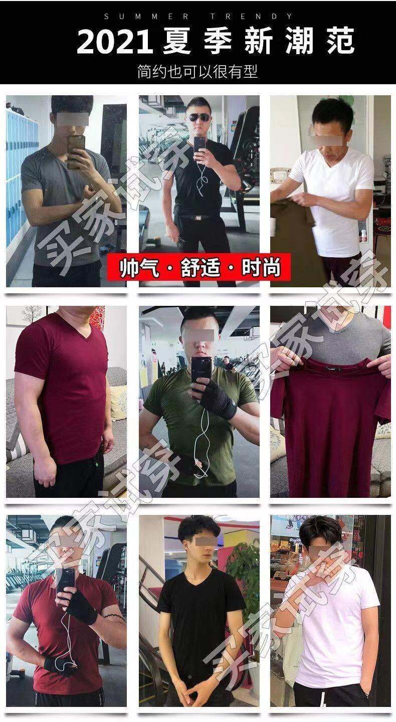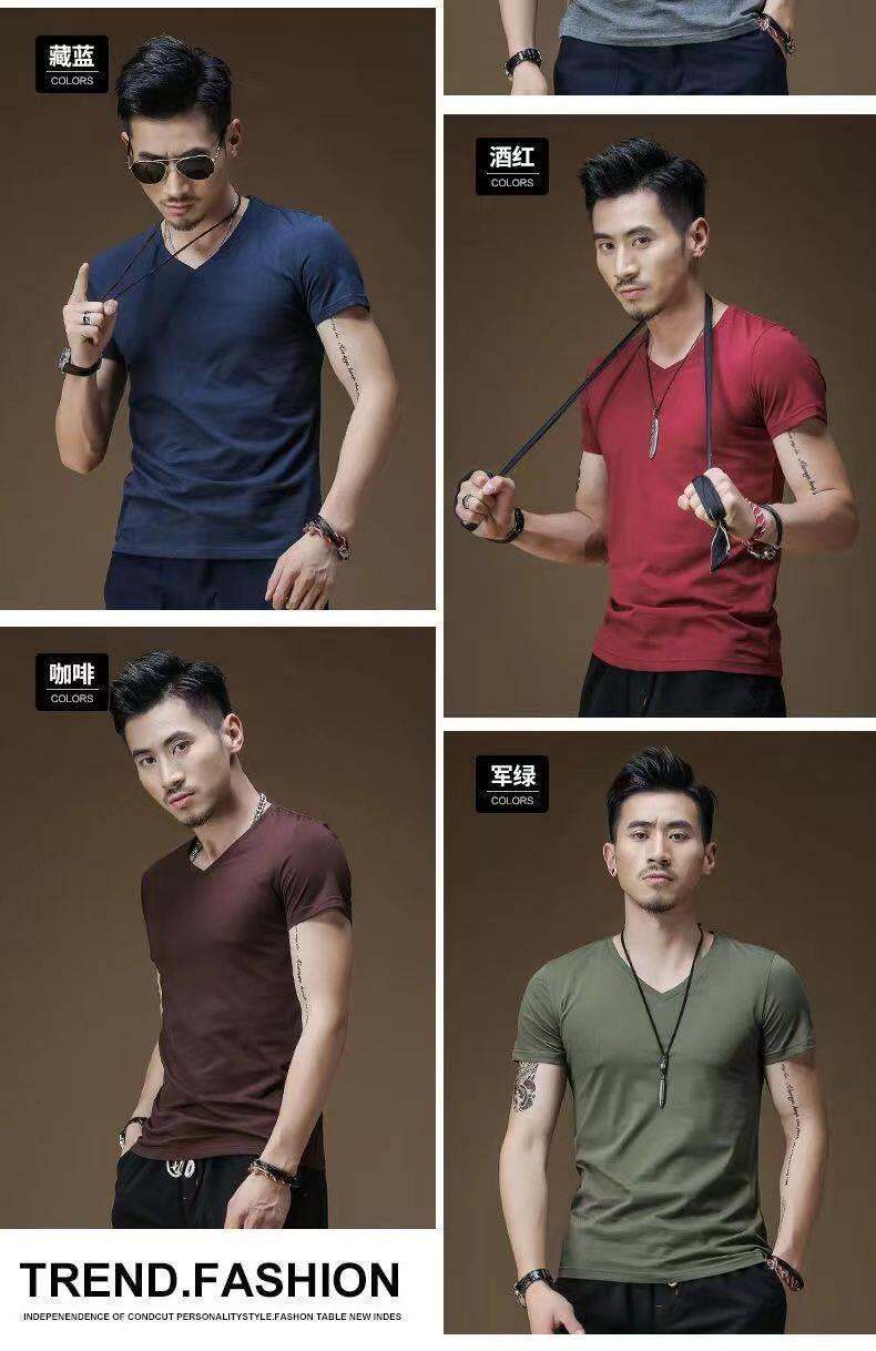 3vyy phong cách mới thời trang ngắn tay rắn màu người đàn ông V-Neck nửa đồ lót lót áo thun cơ thể tay áo lụa cơ thể sửa chữa T-shirt 1/