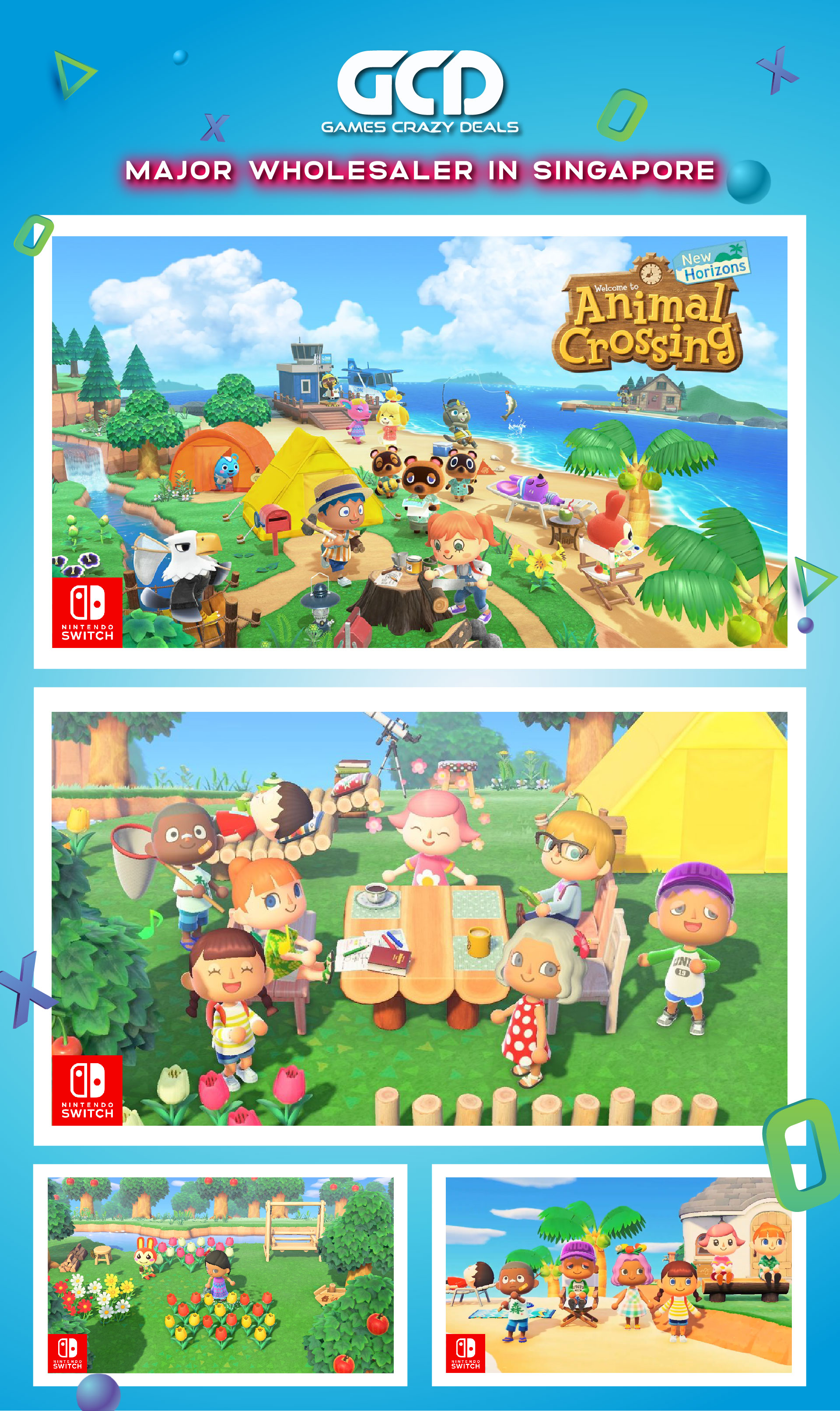Build your community from scratch on a deserted island brimming with possibility; Create your personal getaway and customize your character, home, decorations, and even the landscape itselfCollect materials to construct everything from furniture to tools! Then, use what you create to give your island a personal touchWatch as the time of day and seasons match real life—even your hemisphere! Each day holds potential for surprises and discoveriesGet to know the island residents, garden, fish, decorate, hunt for fossils, and more!Show off your paradise – play on the same system with a total of 4 people**, or play together online* or over local wireless** for fun with up to 8 players