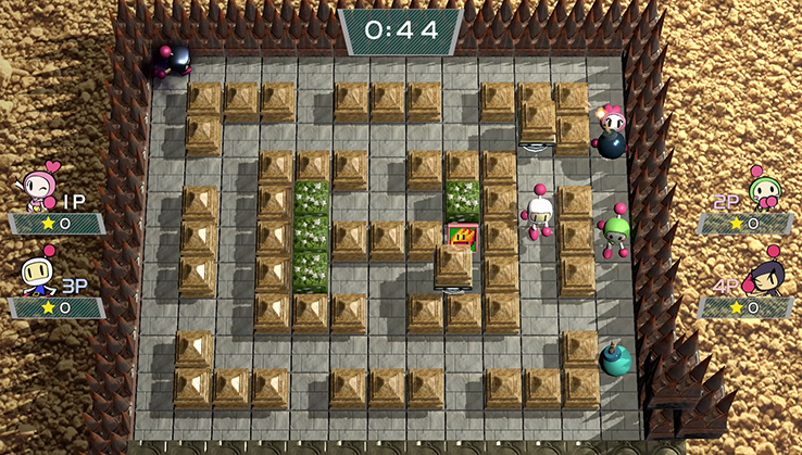 Play 'Battle' mode where up to eight players are dropped within a maze until the 'last man standing' is declared the winner.