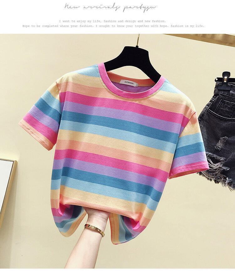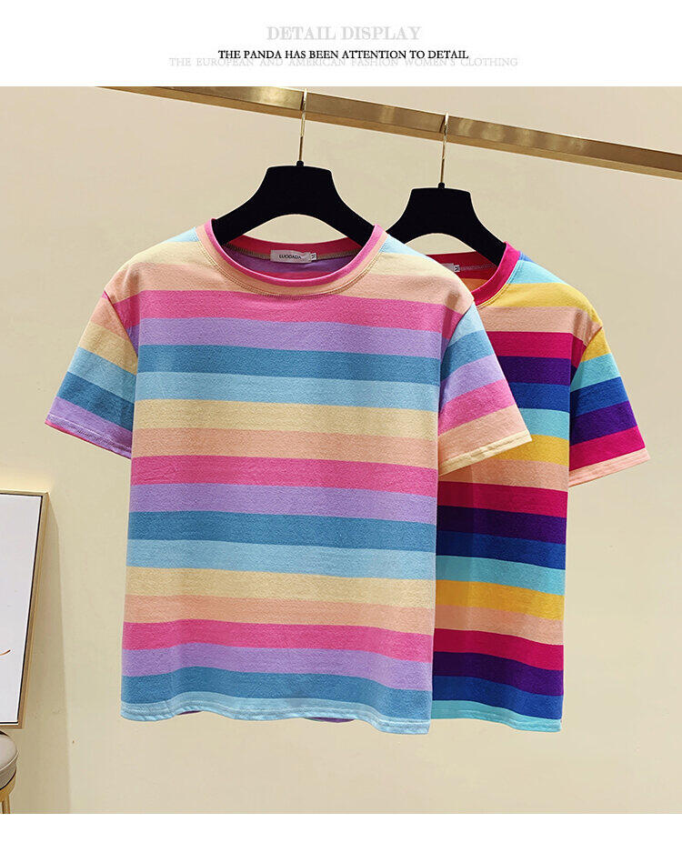 Super Popular Striped Korean Style Loose Round Neck Ins Short Sleeve T-shirt