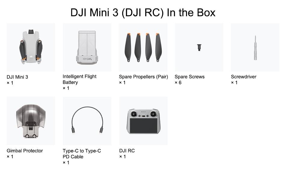 Remote Controller: DJI Mini 3 supports DJI RC-N1 (normal remote controller) and DJI RC (remote controller with screen).